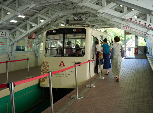 乗車切符は駅舎に向かって右側の窓口で販売しています。自動販売機も併設しています。始発9:00、終発16:30で毎時0分 15分 30分 45分に運転(多客時は臨時便運行)。運賃は大人680円(往復)・小児340円(往復)。天橋立 傘松公園へは天橋立ケーブルカーで約4分。